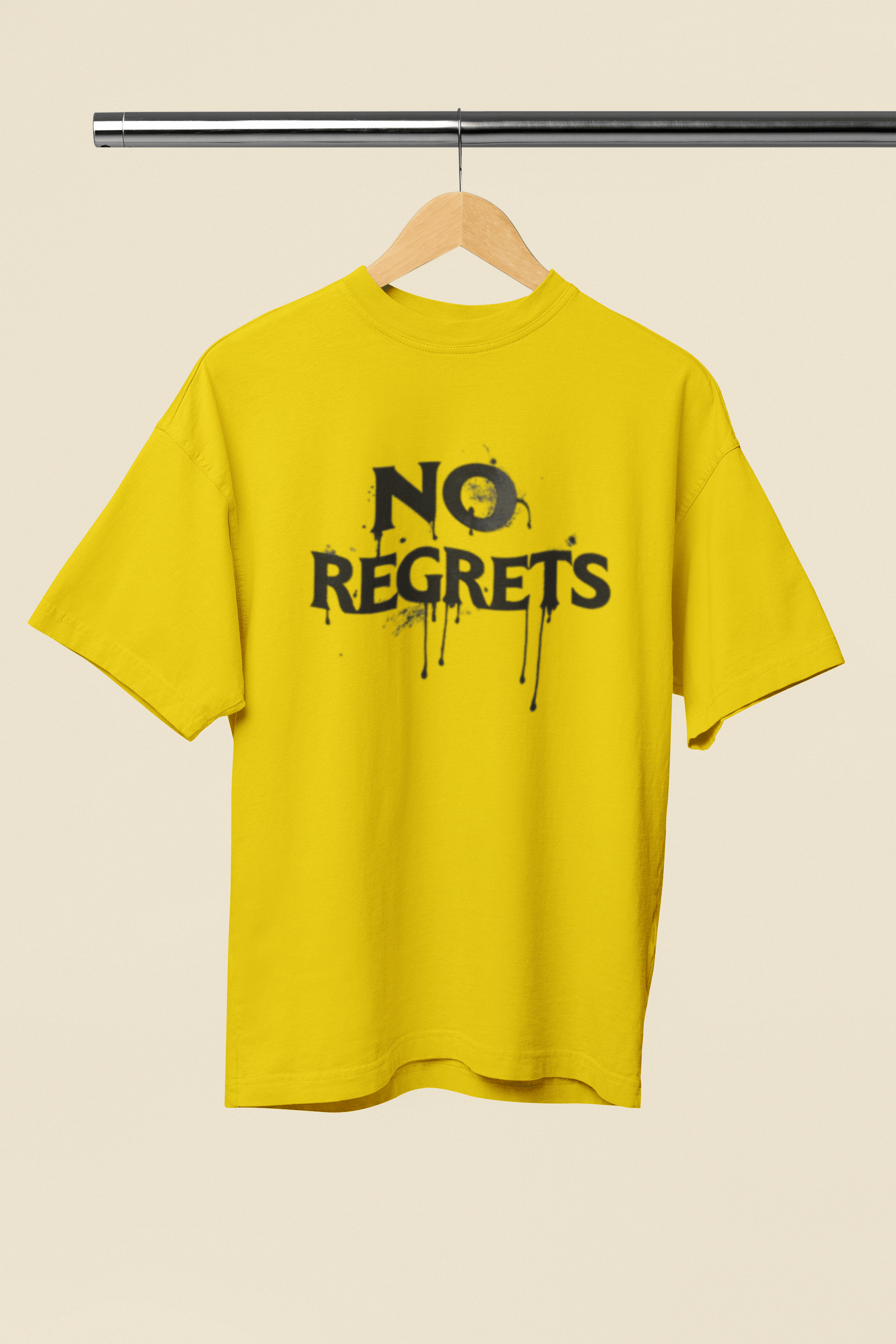 - Bold Front Graphic: Features the high-impact "NO REGRETS" text with a unique, paint-splatter and drip-style print.